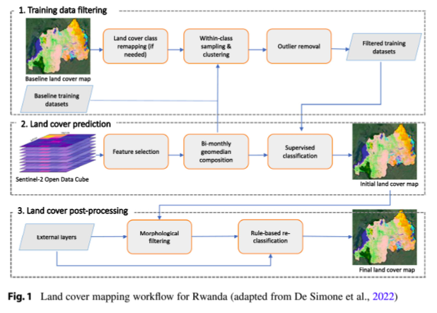 As part of this initiative, FAO has partnered with Digital Earth Africa and FrontierSI to create an open-source, user-friendly platform that will help African nations map land cover and crop types. A key achievement of this collaboration has been the development of a prototype land cover classification workflow within the Digital Earth Africa platform, designed to be scalable for monitoring land use at various scales, from local to national. An initial land cover map for Rwanda has been created, with the results validated through comparison with validation data and engagement with local stakeholders.