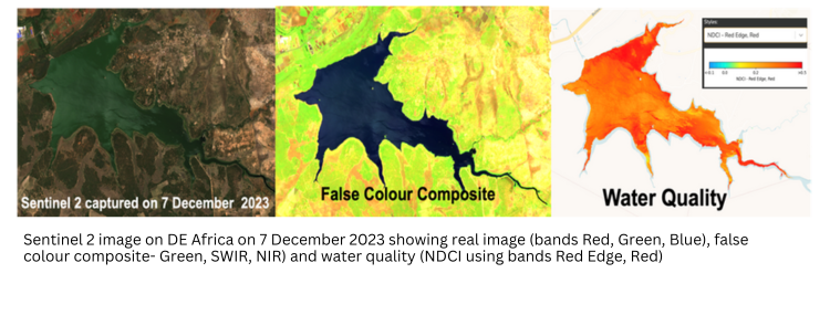 DE Africa was used to study the changes in water extent and quality over time and made comparisons with rainfall data from Climate Hazards Group InfraRed Precipitation with Station (CHIRPS). The study finds that Lake Chivero’s water quality is declining due to increased levels of nutrient concentrations namely, nitrogen and phosphorus, a condition known as Eutrophication that can result in algal blooms degrading the water quality and aquatic life by depleting oxygen in the water. This condition is likely caused by urbanization and agricultural activity.