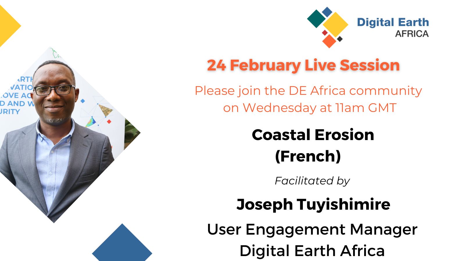Please join the Digital Earth Africa community at 11am GMT, as DE Africa, User Engagement Manager, Joseph Tuyishimire discusses, Coastal Erosion.