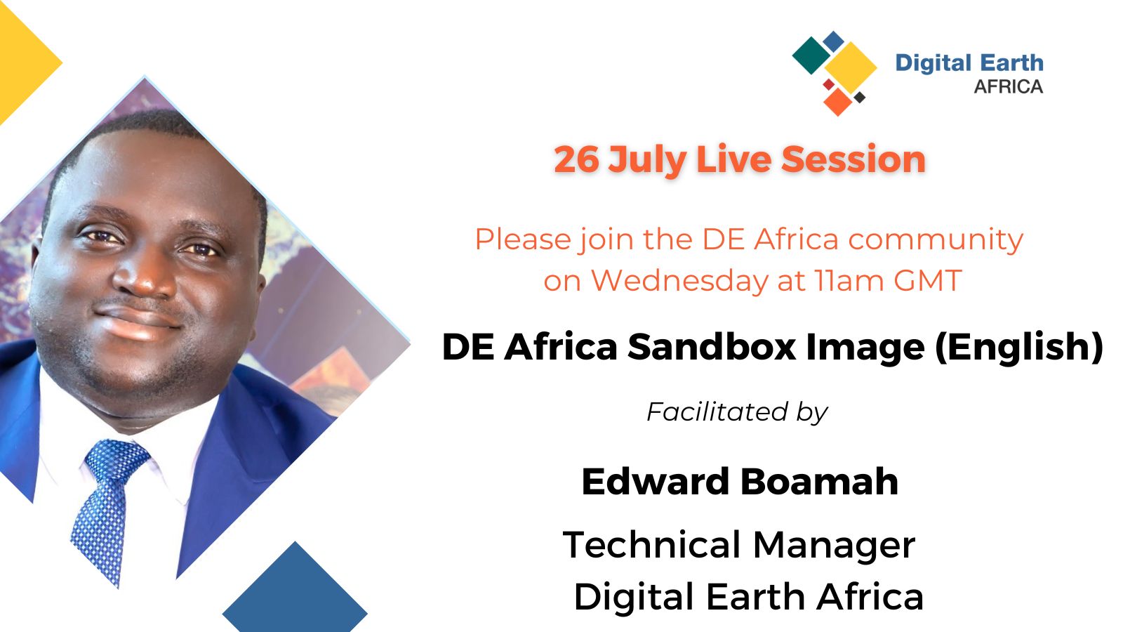 Please join the Digital Earth Africa community at 11am GMT, as Edward Boamah, DE Africa Technical Manager, discusses DE Africa Sandbox Image.