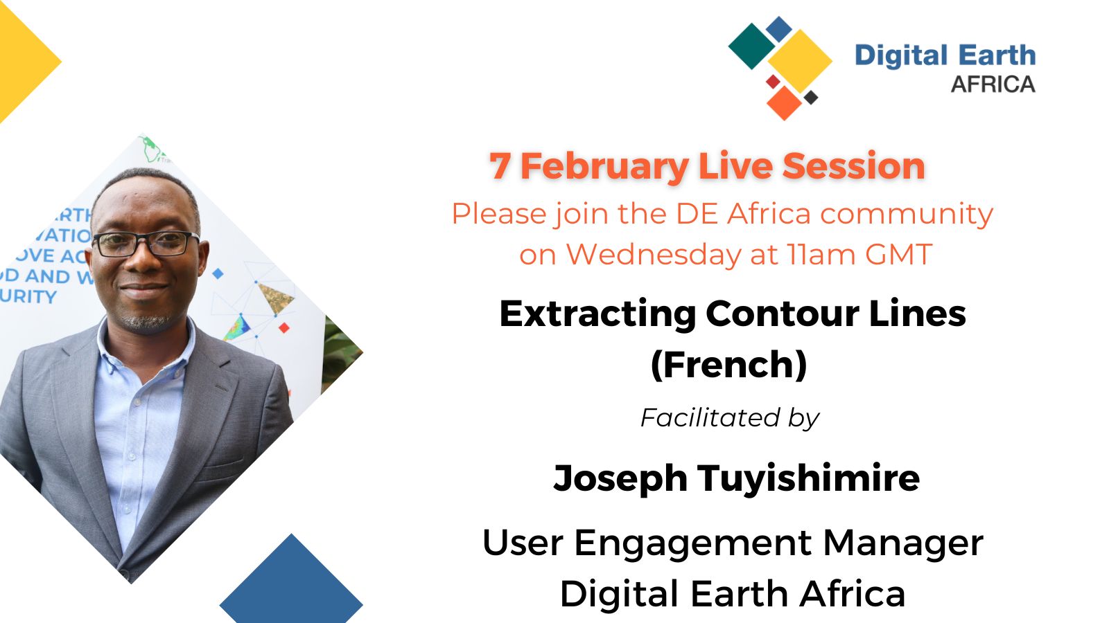 Please join the Digital Earth Africa community at 11am GMT, as DE Africa, User Engagement Manager, Joseph Tuyishimire discusses, Extracting Contour Lines.
