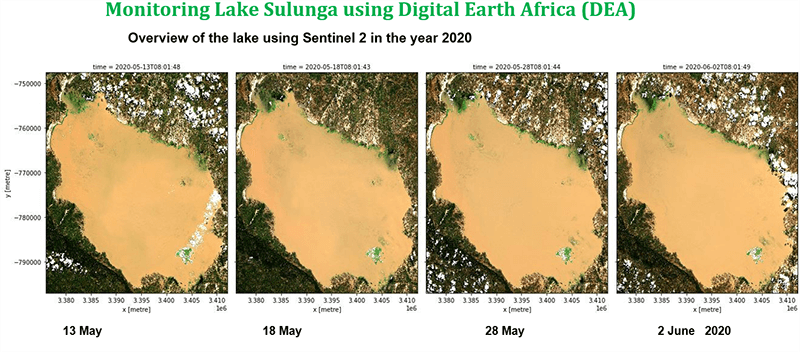 DE Africa worked with Mr Mugambi to transition the NBS to the new platform and conducted further analysis of Lake Sulunga using the Water Observations from Space (WOfS) available both in the DE Africa Map portal and DE Africa Sandbox interface for advanced analysis. This has allowed for time-series analysis over a six-year period from 2013 to 2019 to plot the minimum and maximum water extents. This type of analysis helps monitor the lake for variations in volume and depth to understand and plan for those times throughout the year. The insights gained are already helping the government improve policy and make informed decisions to contribute to SDGs.